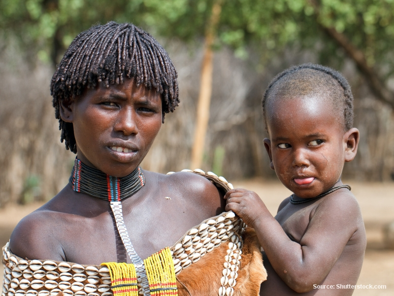 Místních kmenů jsou tu desítky, od těch největších až po ty málo početné. Většina etiopských domorodých kmenů dodnes zpracovává obilniny primitivním způsobem, palicí a v dřevěném hmoždíři, nebo je drtí mezi dvěma velkými kameny. Domorodci jsou drsní, neomalení a někdy i velmi nebezpeční, ale láska matek a dětí vládne na celém kontinentu. Afričanky nosí své děti přivázané v oblečení nebo v šátcích na zádech. Domorodky jsou nedůvěřivé a velmi hrdé.