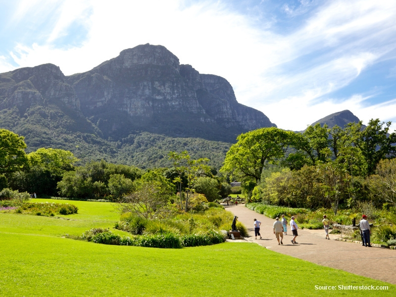 Naše další cesta vede do botanické zahrady Kirstenbosch, kde se procházíme 2 a půl hodiny mezi 14:00 a 16:30. Jsou tady nádherné výhledy na okolní hory a především na krásné květiny celé JAR. Je tu také hezký skleník, kde jsou rostliny vysázeny jako mapa JAR. Fotíme a filmujeme exotické květiny všech možných druhů a názvů, které není možné si ani zapamatovat. Nejkrásnější jsou jednoznačně proteje a strelicie. Také se podíváme na sochy ze Zimbabwe.